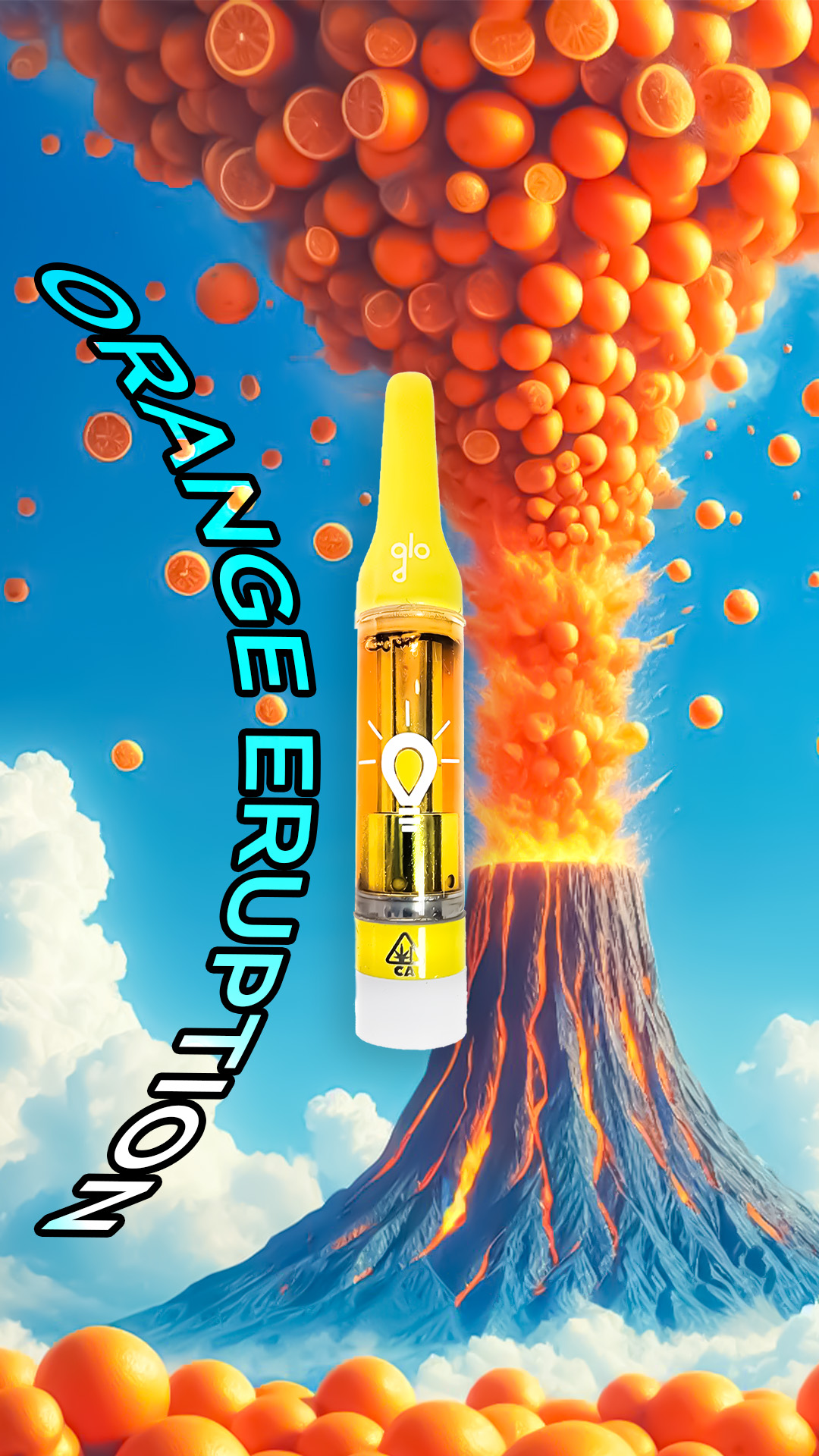 Orange Eruption, a sativa-dominant hybrid from Orange Juice and Girl Scout Cookies, is recognized for its uplifting citrus scent. It provides a clear-headed calm, helpful for anxiety, stress, and depression, making it suitable for productivity or socializing.